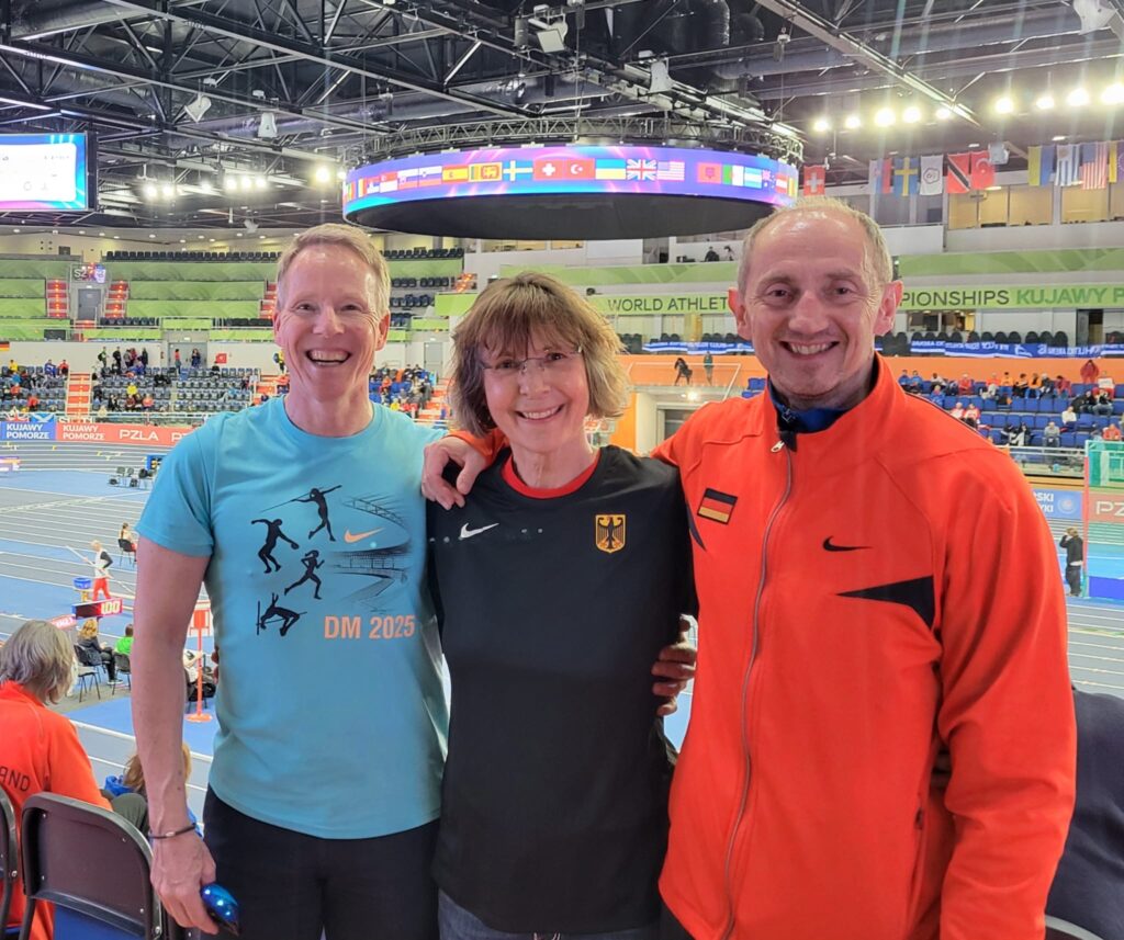 Erneut eine der herausragendsten internationalen Top-AthletInnen war Dana Prada mit Siegen über 60m Hürden (9,01s) und im Fünfkampf sowie Staffelgold in der W45 und Mixed-Staffel, dies sogar mit neuem Europarekord. Bei jedem Start stand Dana ganz oben auf dem europäischen Siegerpodest im polnischen Torun, wo eine Woche zuvor bereits die besten Aktiven Leichtathleten geehrt wurden. Mit über 4000 Punkten erzielte Dana wieder ein herausragendes Ergebnis im Mehrkampf und sorgte für die größte individuelle Goldausbeute des DLV in den jüngeren 40+ Masters Klassen. Was wie Dana sagte mit einem knappen Siegfinish über 60m Hürden herausfordernd begann, setzte sich im Mehrkampf fort, ein erfolgreicher Kampf von Disziplin zu Disziplin mit körperlichen Widerständen, die Dank der hervorragenden Vorbereitung mit Trainer Volker Weber dem Gold nicht im Wege standen.
