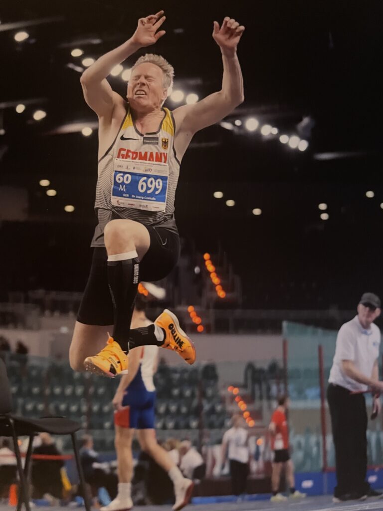 Erstmals in die europäischen Medaillenränge in seiner Paradedisziplin sprang Dr. Jörg Czekalla. Erst im letzten Versuch gelang Ihm die beiden Briten vor Ihm zu übertrumpfen und dies nur mit neuer Persönlicher Masters Bestleistung von 10,54m (M60). Dazu zeigte Jörg auch am Vortag mit dem 4. europäischen Platz im Weitsprung, dass er zu den besten Horizontalspringern gehört. Auch Bernd Lachmann gelang wieder das Einzelpodest (ebenfalls Bronze) der EM mit einer beeindruckenden Saisonsteigerung über 400m auf sehr starke 54,62 in der M55. Leider musste er, auf weitere Medaillen programmiert, im 200m Semifinale verletzt aufgeben. Ihrer internationalen Topform nähert sich wieder unaufhaltsam Jutta Stoppka nach längeren Verletzungspausen mit starken Finalplatzierungen sowohl über 60m (5.) als auch 200m (8.). Jutta trug am Schlusstag dann maßgeblich zur Silbermedaille mit Deutscher Bestleistung der DLV-Mixed 60 Staffel und Bronze in der W60 Staffel bei. So summierte sich die Medaillenausbeute der Friedberger für den HLV und DLV auf stolze acht Europameisterschaftsplaketten sowie weitere 3 Top-Finalplatzierungen. Dies ist sicher eine herausragende Bilanz für einen Verein auf europäischer Ebene.